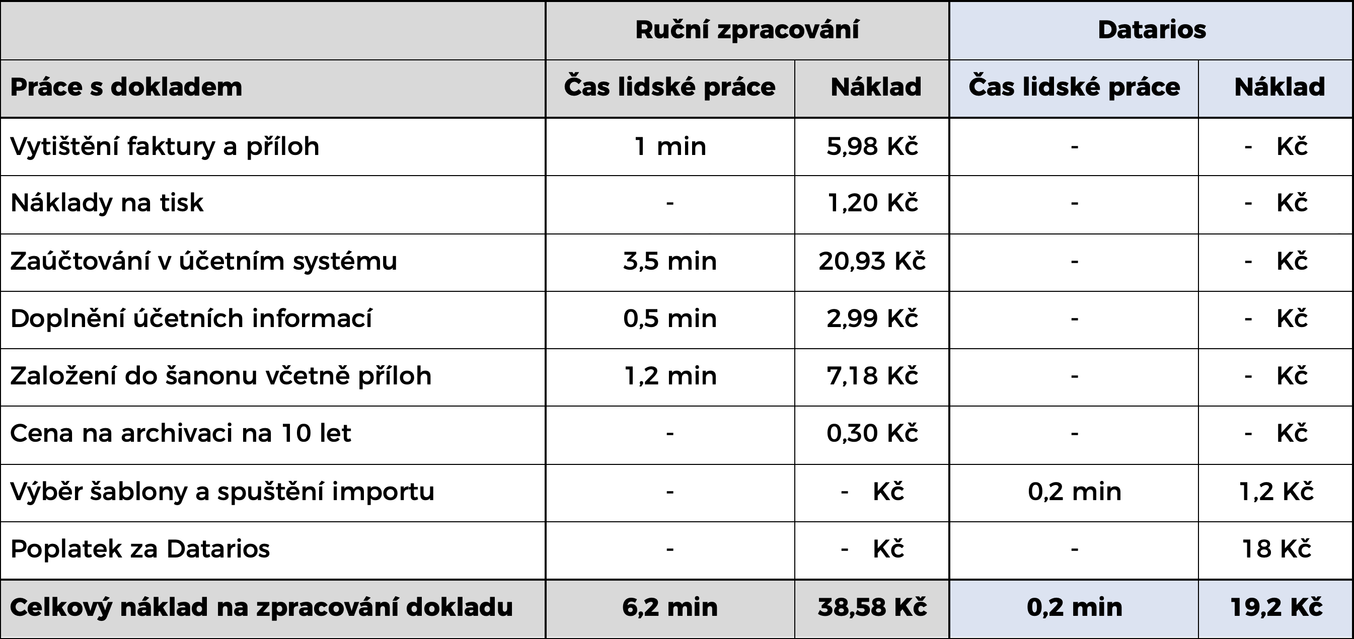 Díky vytěžovacímu stroji, který vytěžuje data z PDF faktur se 100% úspěšností a přesností a automatickým zaúčtovacím šablonám jsme docílili, že účetní již nemusí trávit čas ručním přepisováním a dlouhými kontroly dokladů a dosáhli výrazných peněžních úspor.